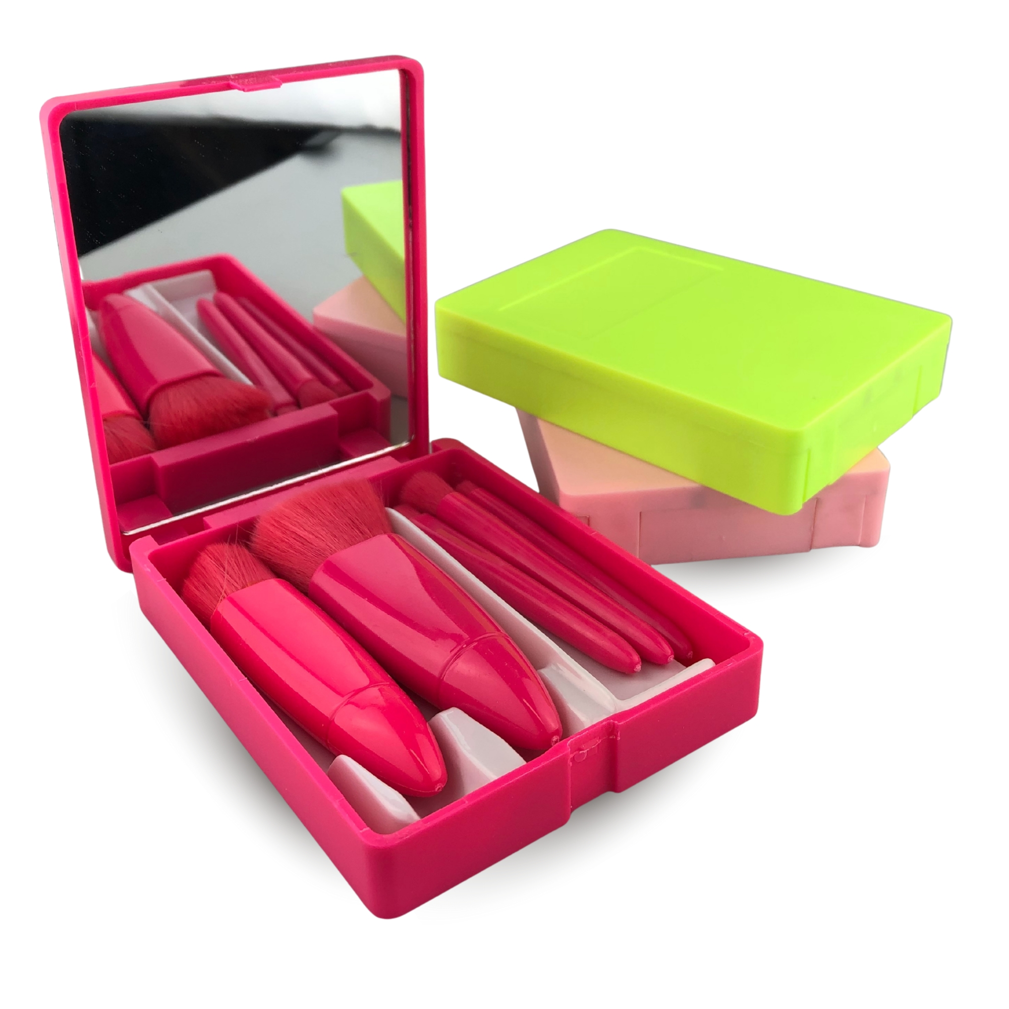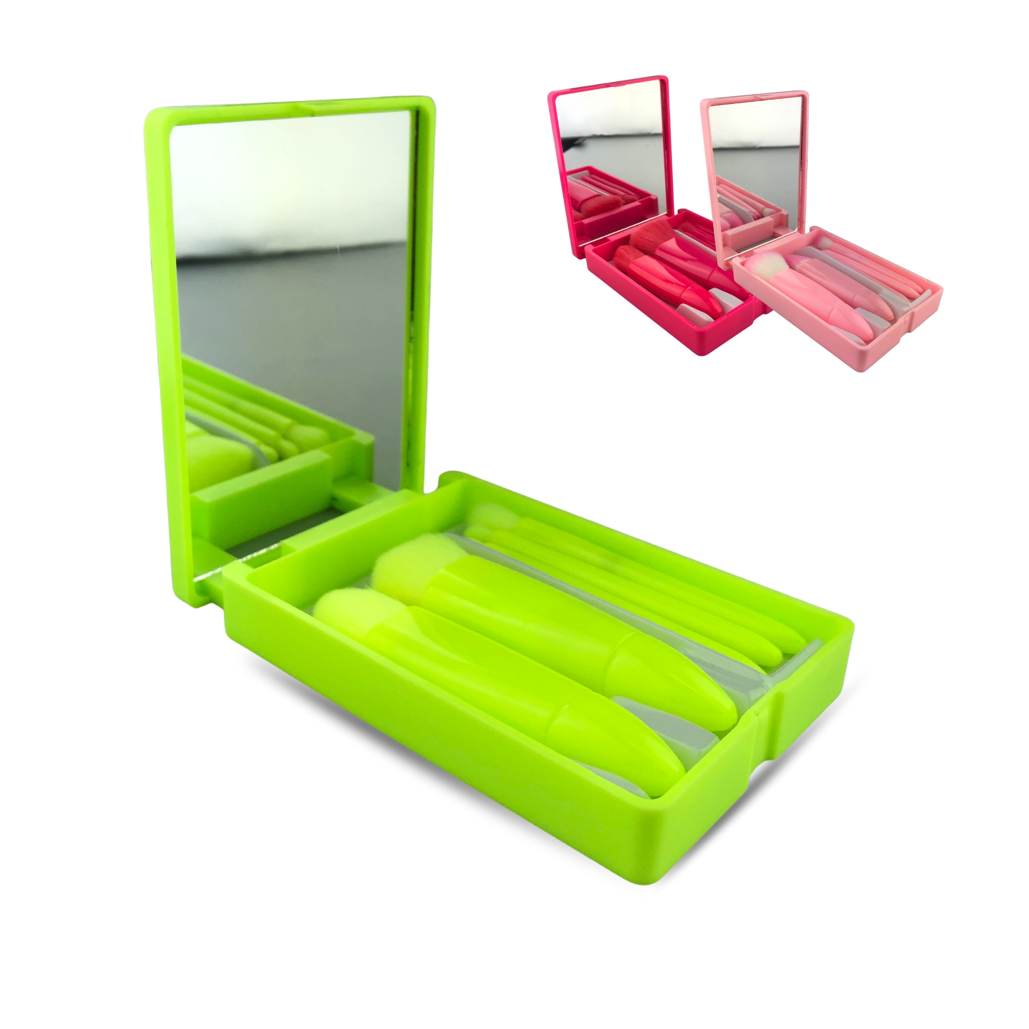 Made from soft synthetic fibres, these brushes are gentle on skin and quick-drying. Comfortable ABS handles ensure easy use. The compact 5-piece set includes powder, blush, eyeshadow and lip brushes, stored in a sleek case with a built-in mirror, perfect for travel, everyday use, or promotional gifting.