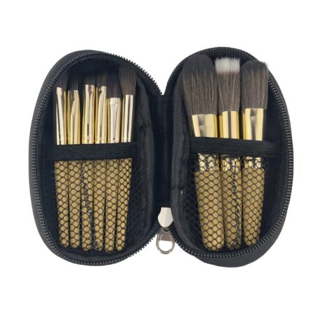 Perfect for beauty on the go, this compact set comes neatly stored in a stylish PU cosmetic bag. Featuring 9 ultra-soft synthetic nylon brushes with durable aluminium ferrules and comfortable wooden handles, it delivers smooth, gentle application every time. Lightweight, travel-ready, and designed for everyday use, parties, or trips, this set covers all your makeup essentials in one sleek package.