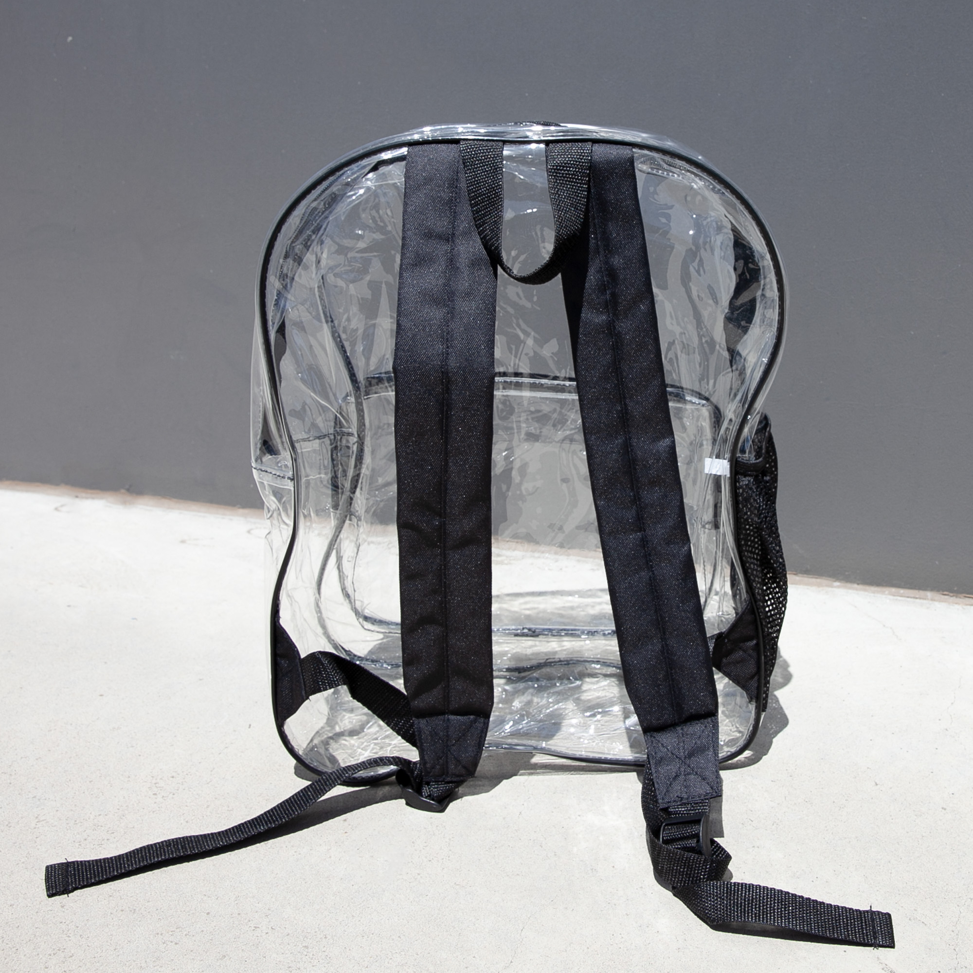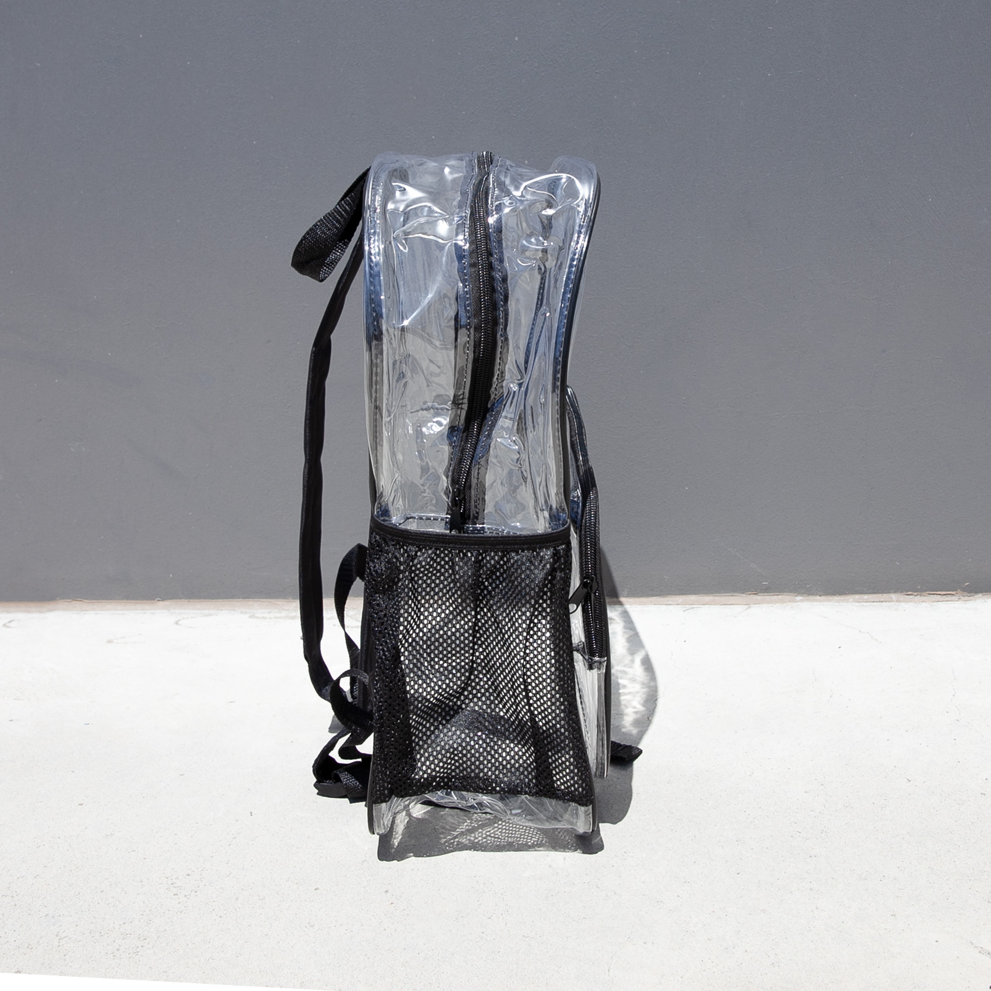 Introducing our durable Clear Stadium PVC Backpack, designed for everyday convenience and effortless visibility. Featuring adjustable shoulder straps for a comfortable fit, this bag offers heaps of storage space with a spacious main compartment, front zip pocket, and additional internal sections to keep essentials neatly sorted. A side drink bottle holder adds practical functionality, making it ideal for school, events, workplaces, and security-friendly environments. Lightweight, easy to clean, and perfect for showcasing branded items, this clear backpack combines style and practicality.