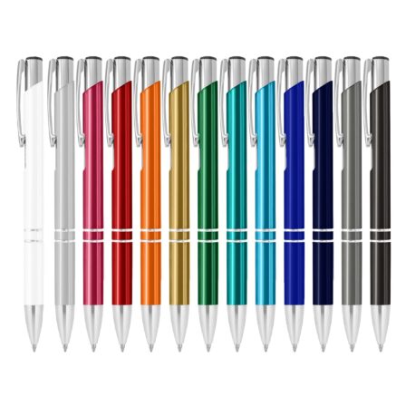 Popular aluminium stylish design pen with shiny silver fittings and metallic finishing barrel click action with plastic Parker-Type German manufactured black ink refill 1200 meters writing distance tungsten carbide ball provides you with quality writing.