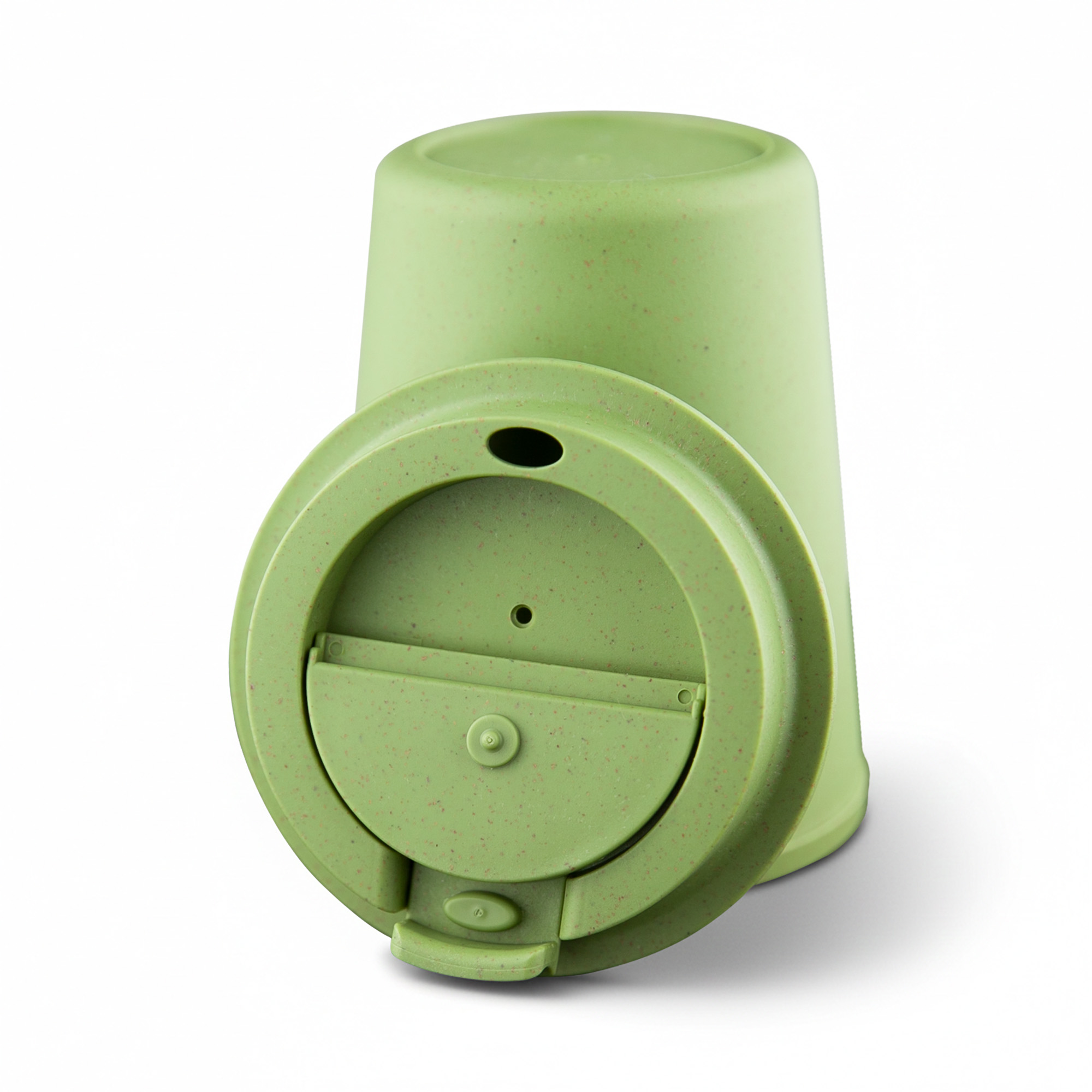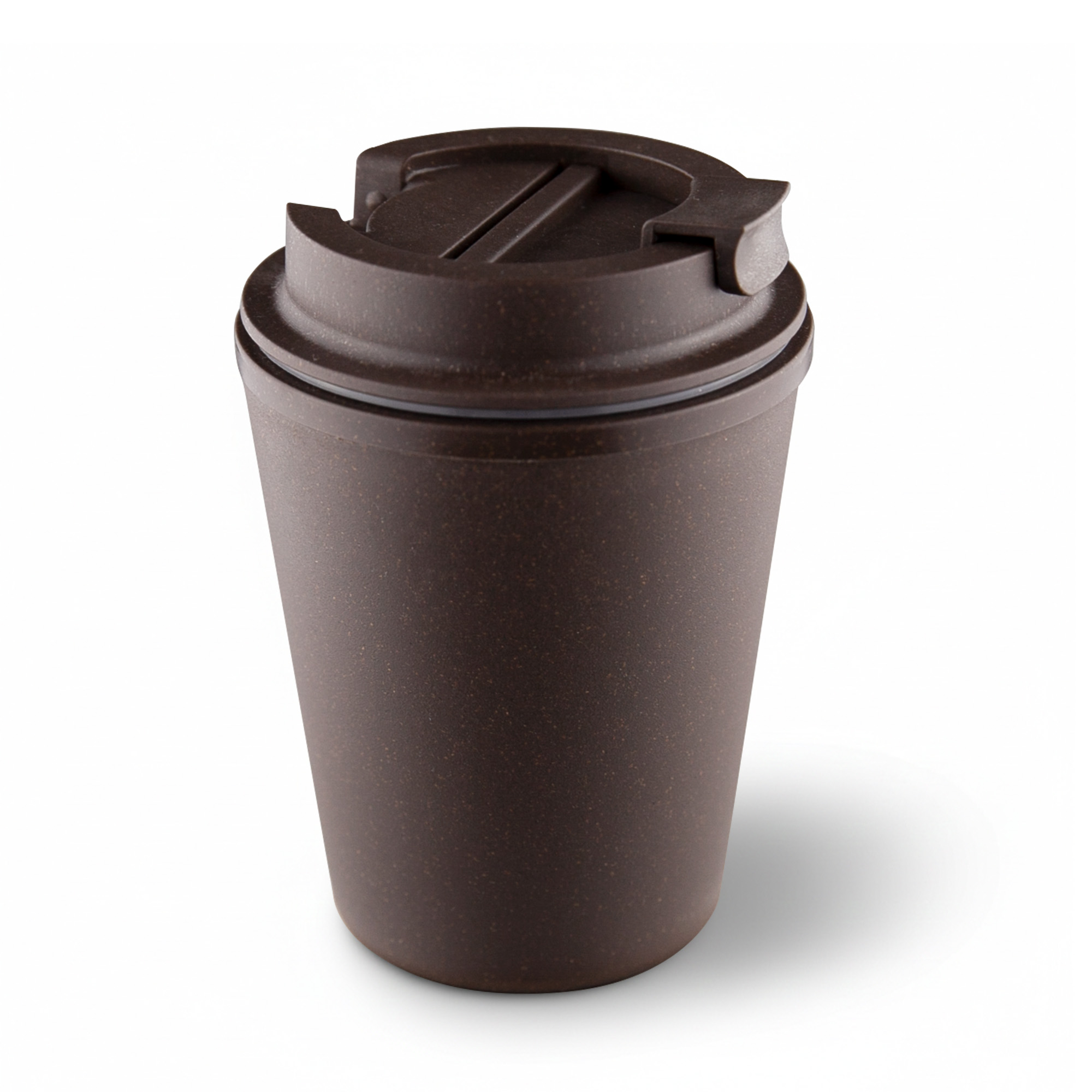This 350ml (12oz) carry cup is a durable and reusable double wall cup that can be customised with your company logo. Crafted with pressed coffee grounds and tea grounds, it offers a more environmentally conscious and recyclable option. It features an easy screw lid with a silicone drinking hole stopper to help prevent leaks and is designed to be 100% leak proof. The double wall construction keeps drinks hot or cold for longer, making it ideal for use on the go, at home, or in the office. This product is not microwave safe and hand washing is recommended.