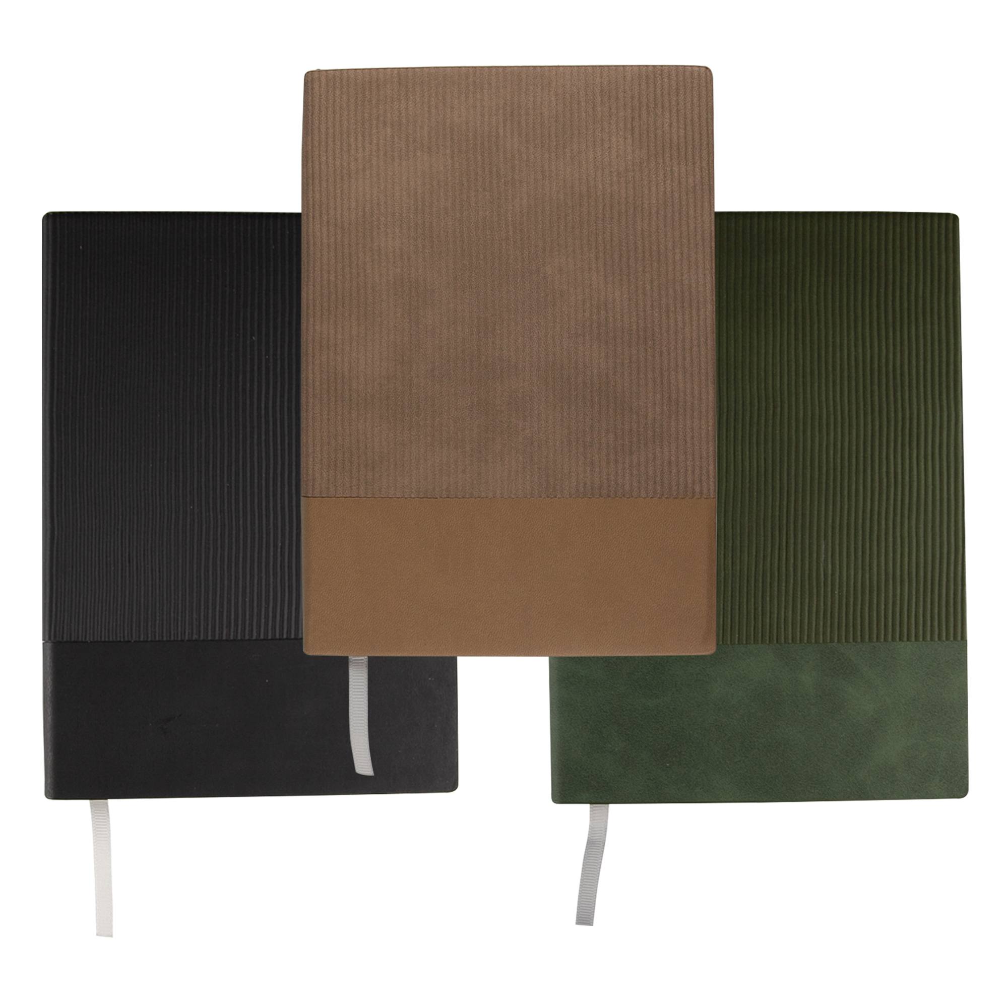 Elevate your everyday notes with the Murcia Notebook B5. Designed with a sleek, two-tone cover, it blends modern elegance with practical durability. The soft-touch PU leather exterior offers a refined look and feel, while the ribbed texture adds a touch of understated style. Inside, high-quality 8mm lined paper provides a smooth writing surface, perfect for journaling, meetings, or daily planning. Finished with a matching grey ribbon bookmark, this notebook makes a professional and sustainable choice for gifting or branding.