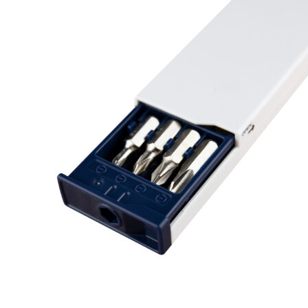Compact and practical, this mini screwdriver tool pack is designed for everyday fixes and quick repairs on the go. Its slim, portable design fits easily into a drawer, bag, or glove compartment, simply slide open the casing to access the 8 different sized screwdriver heads stored inside. To use the tool, select the required bit and magnetically attach it into the designated shaped hole at the head of the tool. This mini tool pack features 4 various sized Phillips and flat head bits, totaling 8 different heads for versatile everyday fixes.